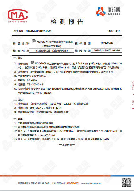 空氣消毒機(jī)檢測(cè)報(bào)告