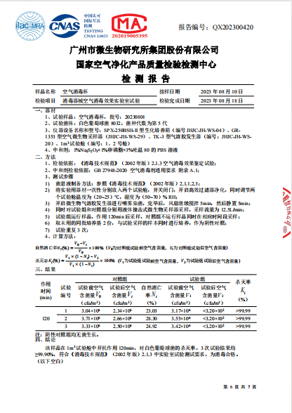 空氣消毒杯檢測報告